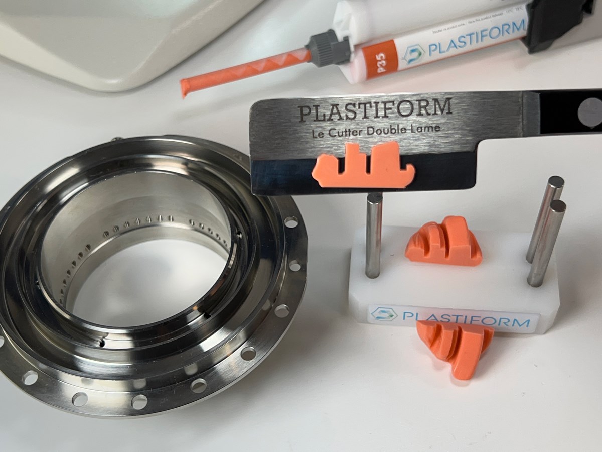 🏗️ Sau khi lưu hóa, khối bản sao đạt độ cứng 35 Shore A với độ dẻo dai vừa đủ, cho phép kéo giãn linh hoạt trong quá trình tháo khuôn. Khả năng đàn hồi này giúp bản sao P35 chịu được giới hạn ứng suất tháo khuôn (extraction constraint) lên đến 20%. Nhờ sự kết hợp hoàn hảo giữa độ sệt và tính linh hoạt, P35 là sản phẩm tuyệt vời để lấy dấu các biên dạng ngoài (external shapes) phức tạp — những khu vực mà các dòng Plastiform dạng lỏng như F20 hay F50 thường bị chảy mất và không thể bám dính được.