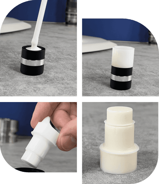 📍 Mẹo tùy chỉnh lưu lượng: Nếu bạn cảm thấy dung dịch chảy quá chậm, bạn hoàn toàn có thể dùng dao cắt gọt bớt phần ngọn của vòi bơm để mở rộng đường kính lỗ thoát. Thao tác này giúp tăng tốc độ dòng chảy, bơm nhẹ tay hơn mà không làm mất đi khả năng định hướng dòng vật liệu. Kiểm soát bọt khí: Khi thi công F40, nguyên tắc tối thượng vẫn là bơm thật chậm rãi từ dưới lên trên để tránh tạo ra các bọt khí (air bubbles) làm hỏng kết cấu bản sao.