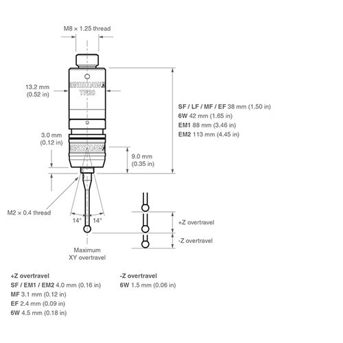 Các mô-đun cung cấp nhiều lực kích hoạt cho phép hiệu suất của đầu dò phù hợp nhất với nhiệm vụ đo lường. Một bộ phần mở rộng đầu dò cũng có sẵn, cũng như mô-đun 6 chiều. Ren gắn bút cảm ứng chấp nhận bút cảm ứng từ dòng Renishaw M2.