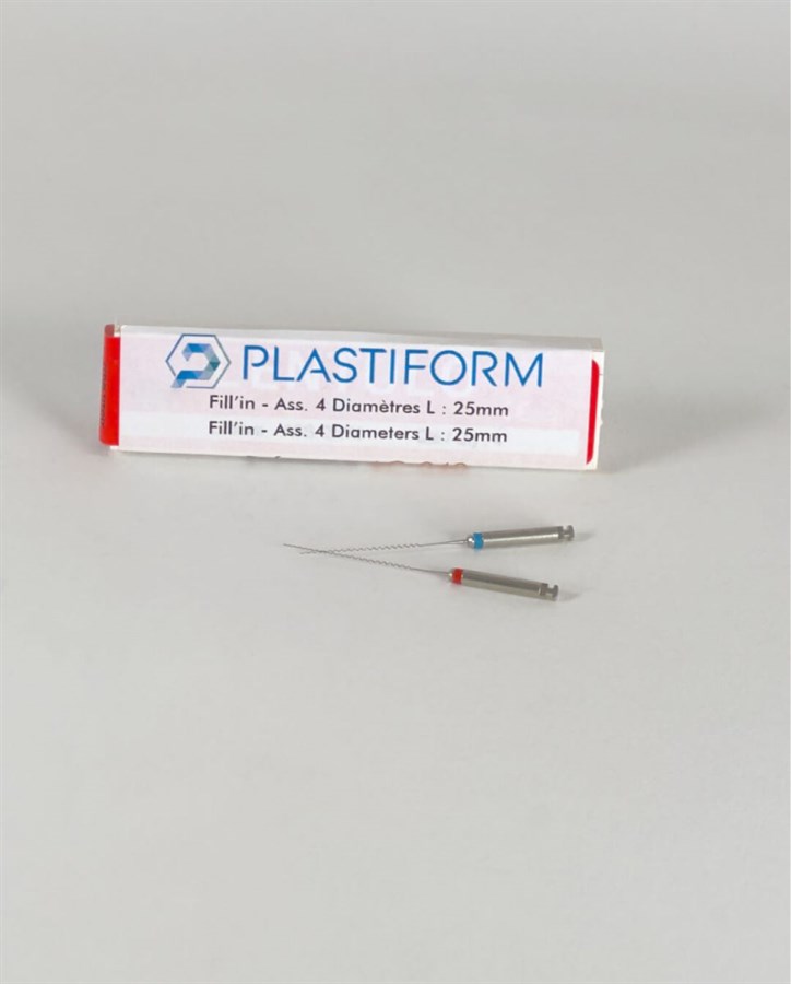 Fill'In là các que kim loại nhỏ được thiết kế đặc biệt với biên dạng xoắn ốc, có nhiệm vụ hỗ trợ các dòng dung dịch Plastiform lỏng (Fluid) len lỏi sâu vào các khe rãnh có không gian cực kỳ chật hẹp. Phụ kiện này giúp kỹ sư lấy dấu và sao chép được những chi tiết tinh xảo và nhỏ nhất trên bề mặt cần kiểm tra.